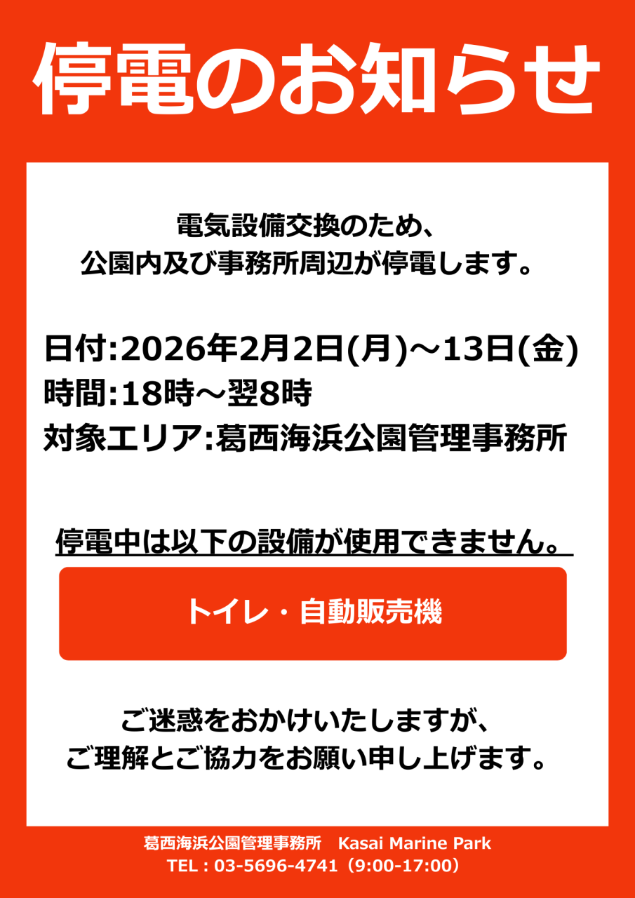 停電のお知らせ - 【公式】葛西海浜公園