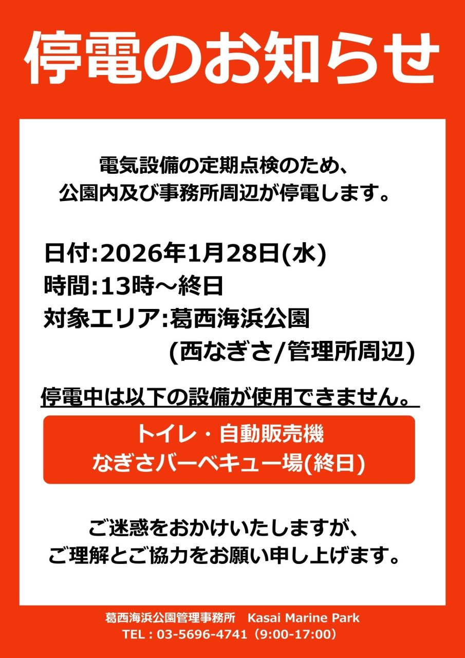 停電のお知らせ - 【公式】葛西海浜公園